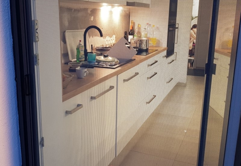 Az első két képen egy oldalra húzható, redőnylábakra felszerelt, míg a harmadik képen egy fehér színű, függőleges működtetésű mobil szúnyogháló látható, amely egy tetőtéri ablak belső oldali gipszkarton falára lett rögzítve, párhuzamosan a fal élével. A következő képen erkélyajtóra épített nyíló, míg az utolsó képen egy oldalra gyűjtő pliszé rovarháló tekinthető meg. A legtöbb nyílászáróra vagy falsíkra könnyedén felszerelhetők, miközben védenek a különféle rovarok és szúnyogok bejutása ellen.