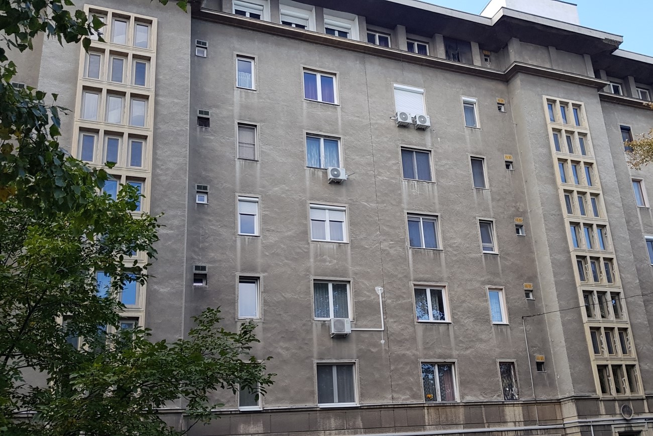 Vállalatunk legnagyobb projektjénél, öt lépcsőházhoz tartozó homlokzati nyílászárót cseréltünk normál, kívül világos sárgaréz -belül fehér színű profilra, két rétegű hőszigetelő üvegezéssel, a teljes hat emelet magasságban. A két kilincses bukó ablakokra fix alumínium peremes rovar -és szúnyoghálók lettek felszerelve (a bejárati ajtó színével megegyező) RAL 1014 színben, ezzel megakadályozva a nem kívánt rovarok és bogarak bejutását a lépcsőházakba.